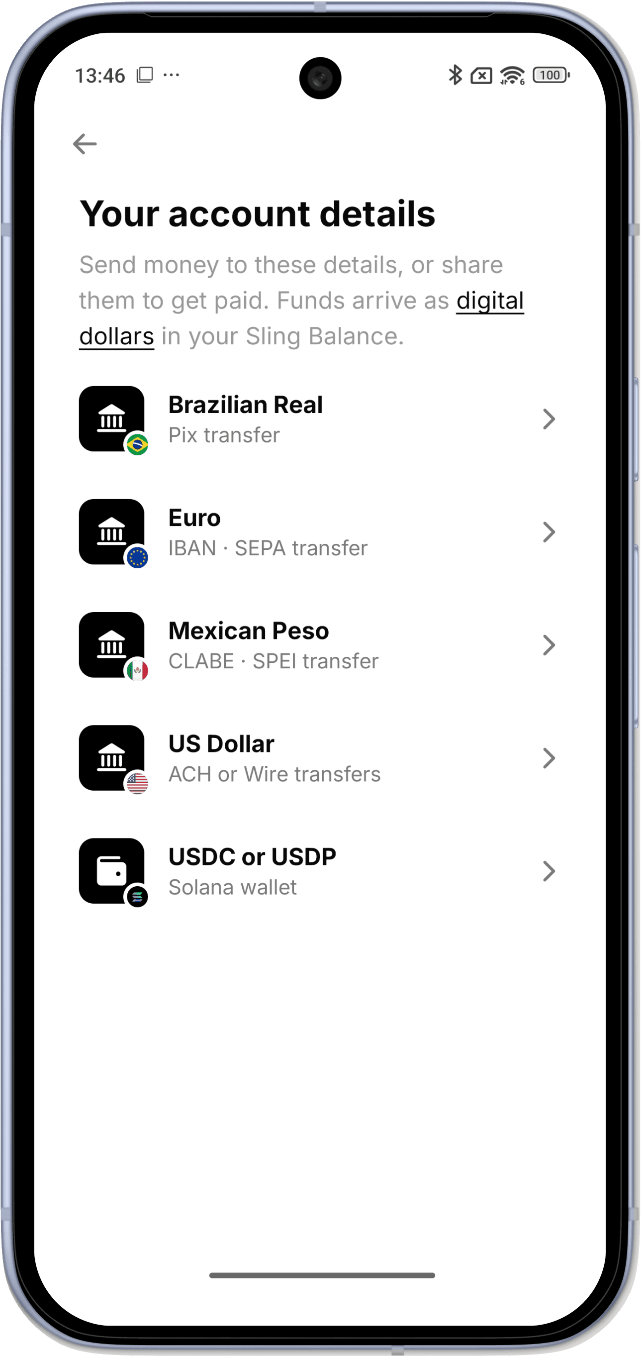 From San Francisco to Mexico City, New York to Rio de Janeiro, Amsterdam to Nairobi, Sling helps people send and receive money around the world.